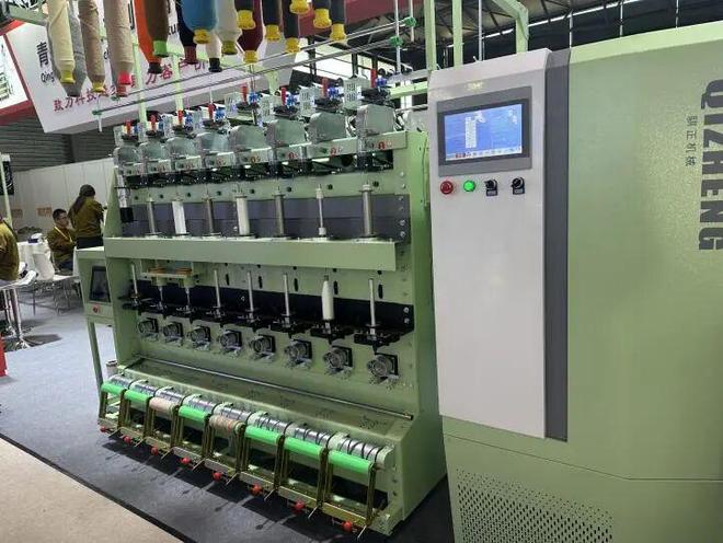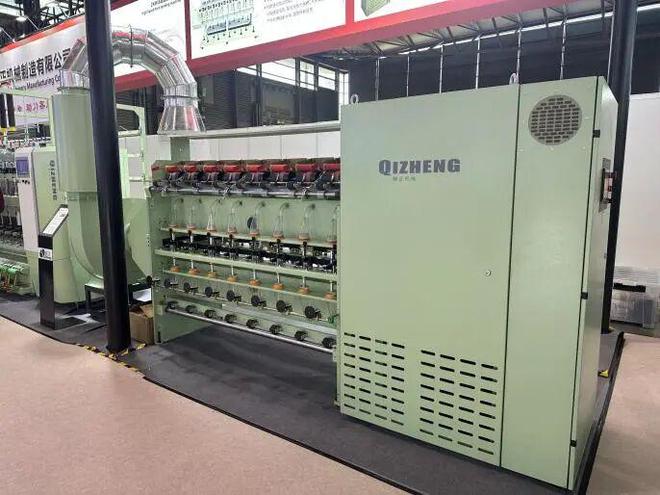 在青岛骐正的展位上,老方和姜芊煜总经理聊了他们的几款产品,除了棉纺、毛纺、长短纤通用粗纱机外,老方对一些纱线后处理设备非常感兴趣,感觉很有特色。