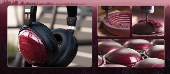 FT13的木碗采用原产自南美热带雨林的紫芯苏木,在自然氧化的作用下,其色泽会逐渐变深,最终稳定为绛紫色。每一副木碗都需经90天的氧化着色,并经历CNC精密成型、高光烤漆、反复打磨抛光等工序,使其实木纹理清晰呈现。这种木材不仅物理性能优异,密度和硬度远超一般木材,具有极佳的耐腐蚀性,更能有效减轻腔体共振,提升声音响应速度和纯净度。