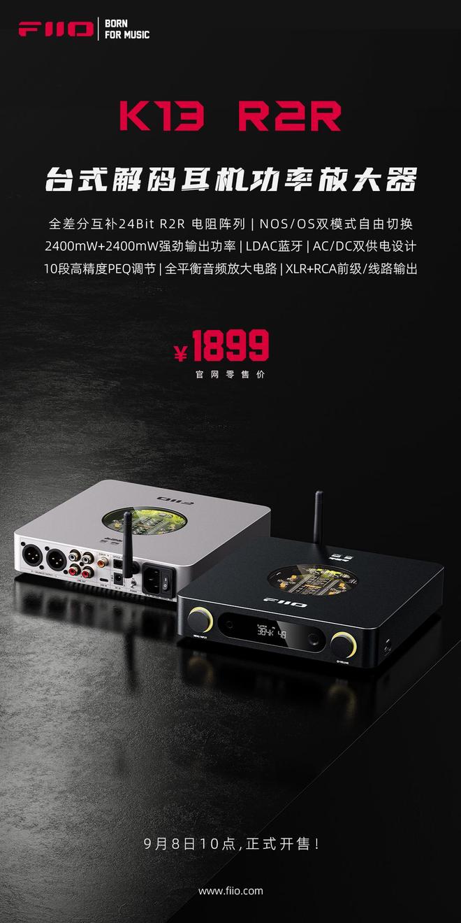 K13 R2R更配备了全平衡放大电路,拥有2400mW+2400mW强劲输出功率以及LDAC蓝牙、十段高精度PEQ调节、可调RGB炫彩氛围灯等多种硬核配置。